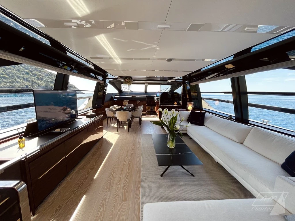 The Riva Folgore 88 is designed to stand out on the water. With its unmistakable lines and bold, modern profile, it offers a striking presence combined with a refined onboard experience. Every detail is crafted to create a seamless balance between style, comfort, and performance. Spacious outdoor areas invite you to relax and enjoy the surroundings, while the interiors offer a calm and elegant atmosphere, ideal for extended time on board. Whether cruising along the coast or anchored in a quiet bay, the experience feels smooth, composed, and elevated.