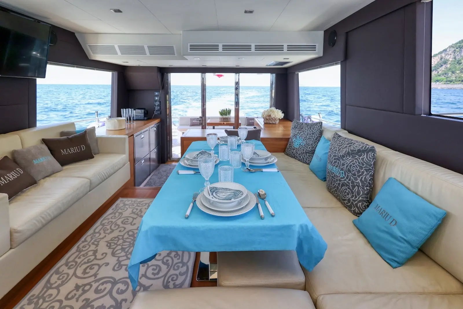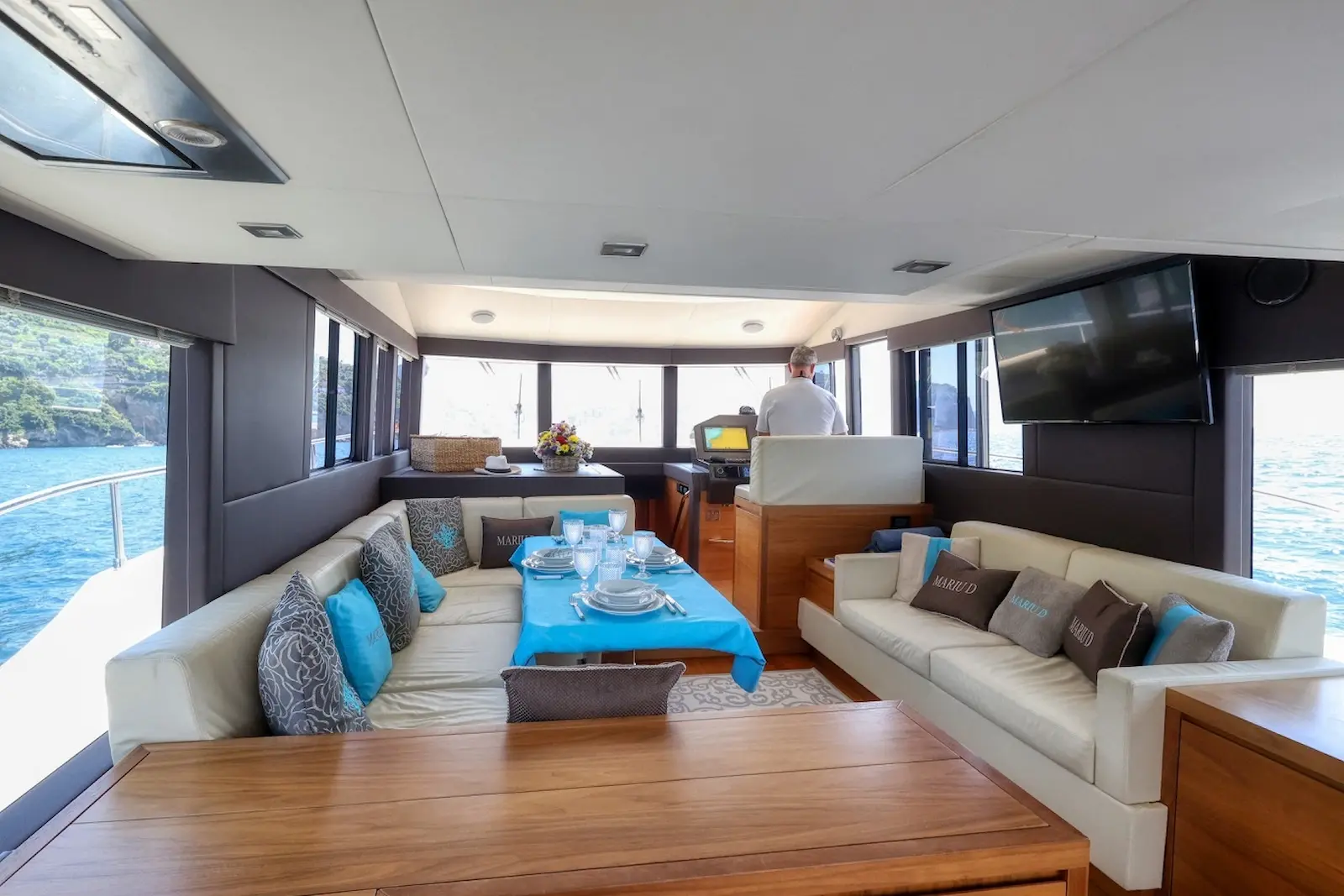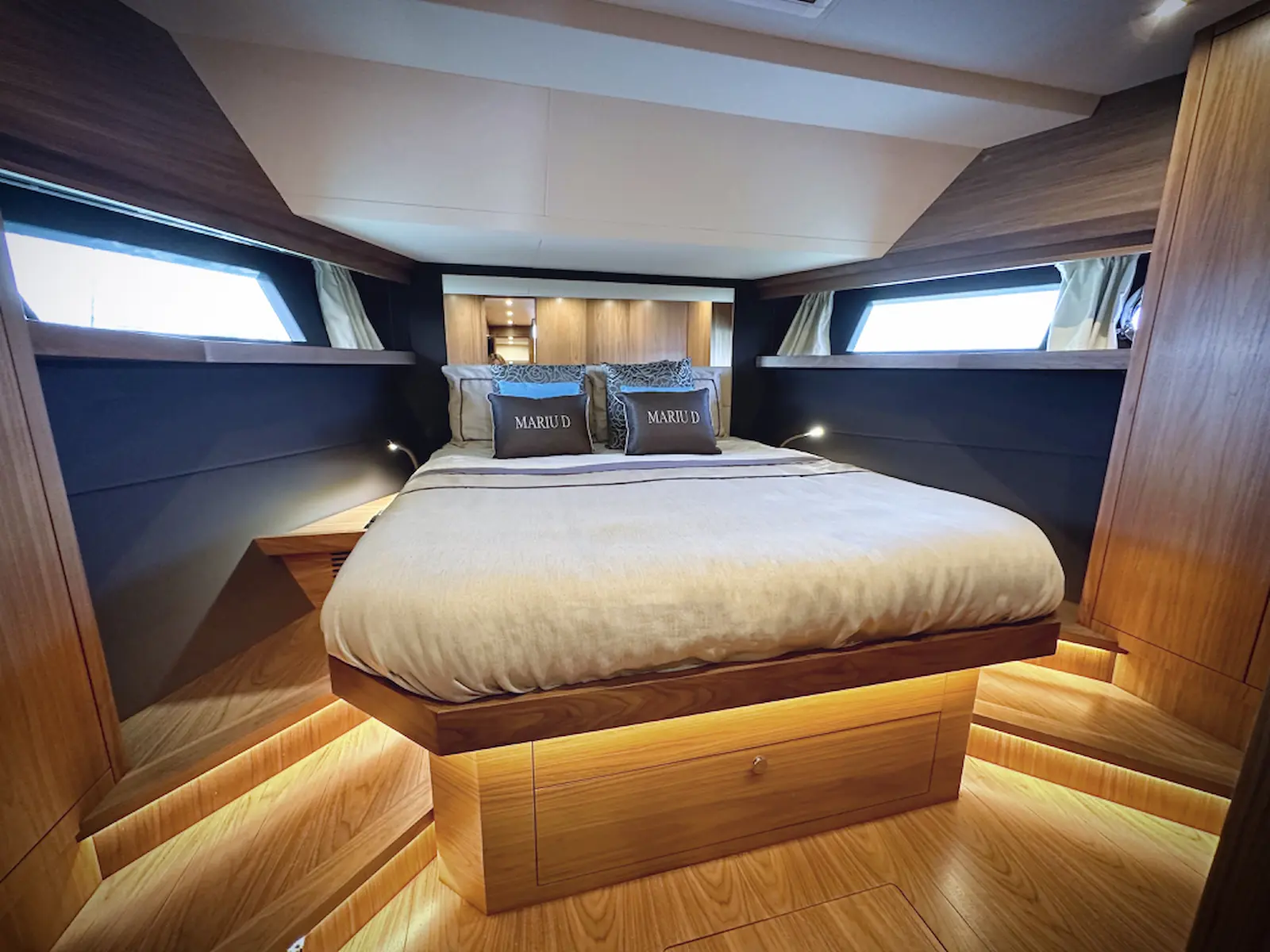 The Sundeck 580 is built around space and ease on the water. Its wide and open layout creates a natural flow between different areas on board, making it ideal for spending time together, whether cruising along the coast or anchored in a quiet bay. The flybridge becomes a central point to relax, while generous sun areas offer multiple spots to enjoy the day. Everything feels simple, open, and comfortable, allowing the experience to unfold naturally from morning to sunset.